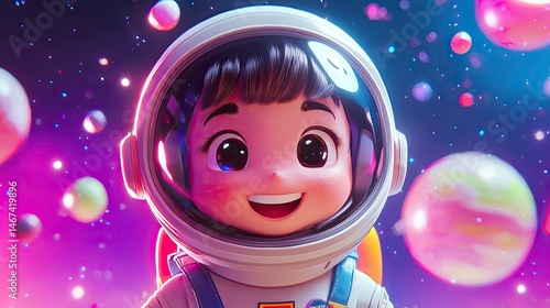 Smiling child astronaut in space