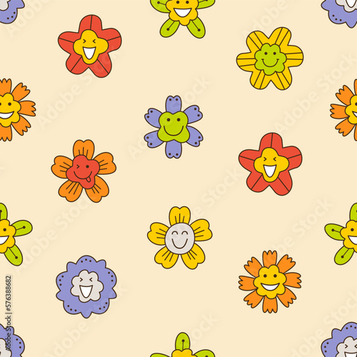 Smiling flower, abstract personage, mascot design, funny face, cute icon