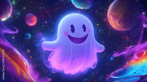 Smiling Ghost in Space with Planets and Stars