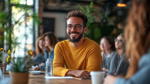 Smiling man in meeting.