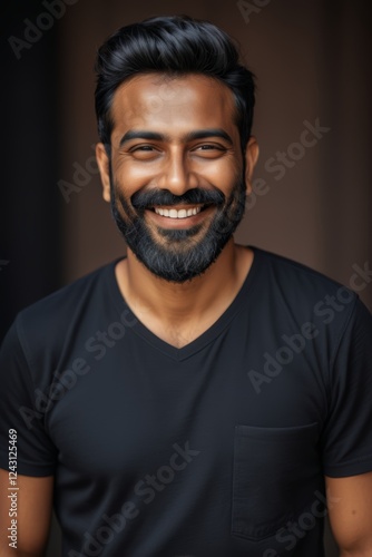 smiling man with beard and black shirt posing for a picture