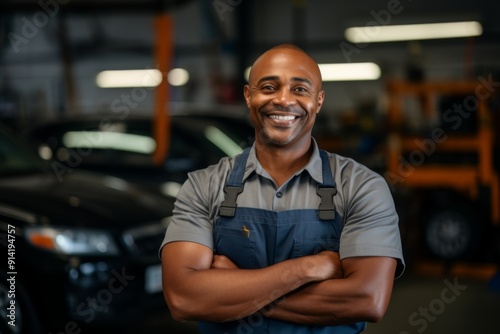 Smiling portrait of a middle aged car mechanic in workshop