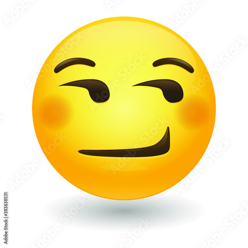 Smirking Emoji Vector art illustration design. Emoticon expression graphic round. Avatar kawaii style.