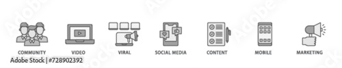 SMM banner web icon illustration concept with icon of community, video, viral, social media, content, mobile and marketing icon live stroke and easy to edit