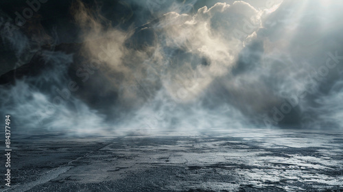 Smokey background with concrete floor depicted as a scene from a fantasy novel