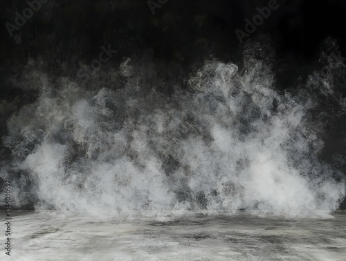 Smoky studio floor, dark background, design backdrop