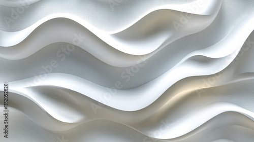 Smooth 3D white seamless wave textures with soft lighting, creating a clean and modern decorative panel