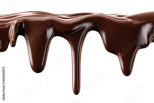 Smooth dark chocolate flowing down on a transparent background, sweet indulgence