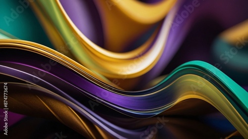 Smooth flowing abstract waves in purple and gold. Dynamic and elegant color contrast. Soft textures and organic shapes create an illusion of movement and balance, captivating the eye.