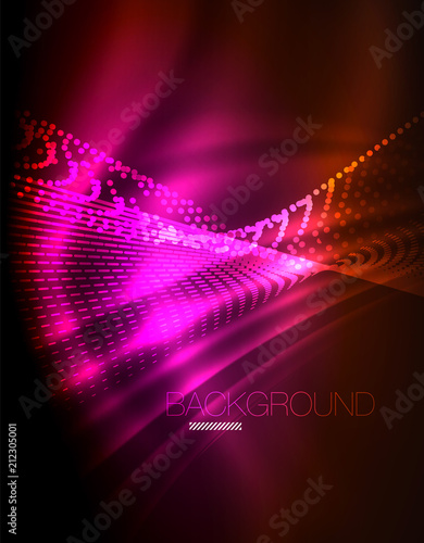 Smooth light effect, straight lines on glowing shiny neon dark background. Energy technology idea