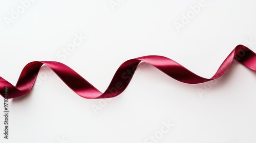 Smooth red ribbon gently curling in the air against a white background creating an elegant flow and minimalist style