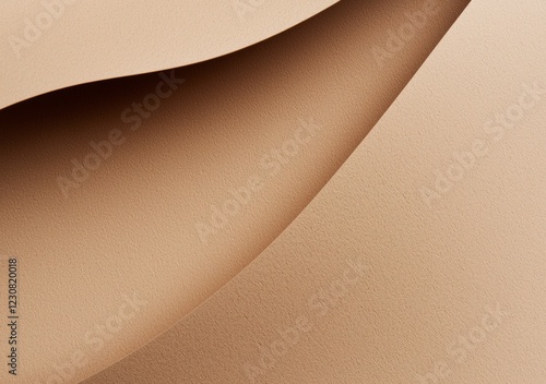 Smooth, undulating curves of beige paper layers create an abstract background, offering a minimalist aesthetic with subtle shadows and textures