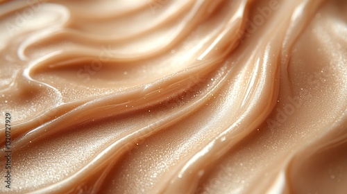 Smooth wavy lines are formed by beige liquid cosmetic foundation, creating an elegant and luxurious texture perfect for beauty and makeup themes.