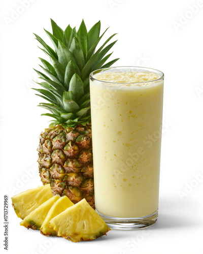 smoothie with pineapple, banana and coconut milk, isolated on white background