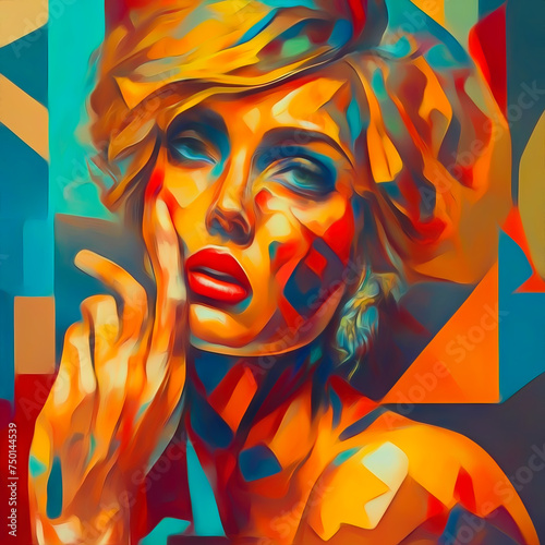 Smudged impressionistic portrait of a youngish woman painted for psychedelic glam-rock effect, her left earring hanging like a tropical bird caught in a feeder, her expression one of world-weariness