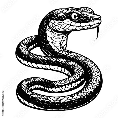 Snake . Black and white illustration. Pattern for tattoos, for use in graphics. Generated by Ai