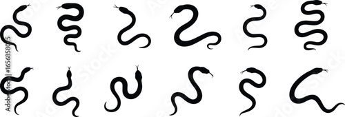 Snake silhouette collection, reptile vector illustration, black snake shapes, serpent outline design, wild