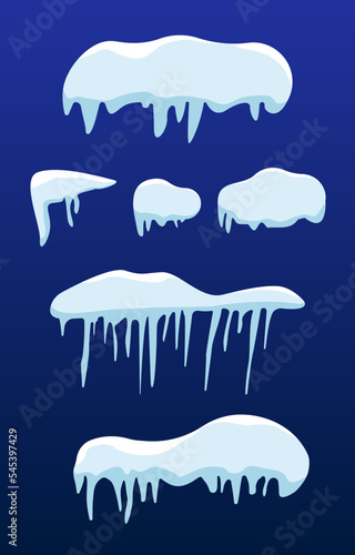 Snow caps illustration set. Icicles and snowdrifts vector elements pack.