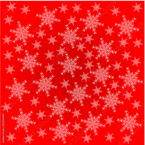 Snow red background. Christmas snowy winter design. White falling snowflakes, abstract landscape.
