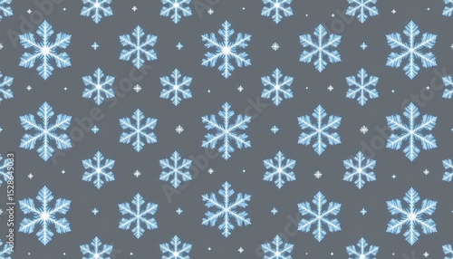 Snowflake Pattern Design on Gray Background for Winter Decor and Seasonal Themes in Soft Blue and White Colors