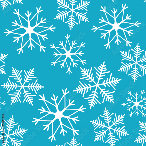 Snowflake simple seamless pattern. Abstract wallpaper, wrapping decoration. Symbol of winter, Merry Christmas holiday, Happy New Year celebration Vector illustration