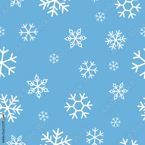 Snowflake vector. Snowflake seamless pattern on a blue background. Vector Christmas template. Christmas seamless pattern. Winter snowflakes