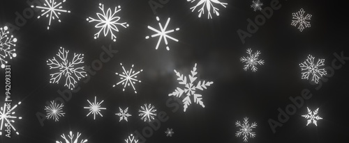 Snowflakes and bokeh lights on the blue Merry Christmas background. 3D render