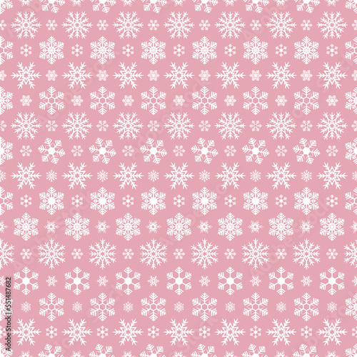 Snowflakes. Repeating vector pattern. Isolated pink background. Seamless festive ornament. Delicate crystal background. Idea for web design, packaging, wallpaper, cover, textile. Frostwork.