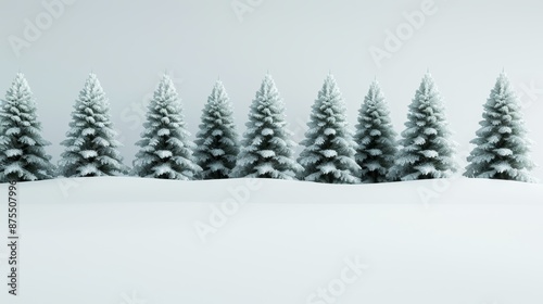 Snow-laden evergreen trees rise from a vast snowy landscape