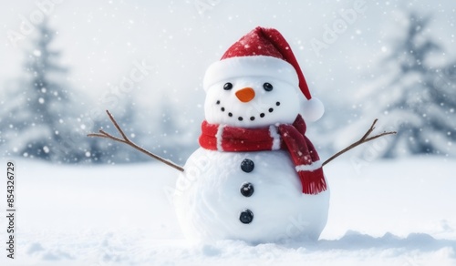snowman with red hat and red scarf