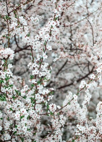 snow-white flowers on a flowering tree in may