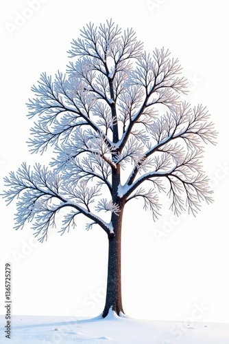 Snowy branches with bare winter trees isolated on white background, isolation, white, tree