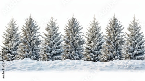 Snowy fir trees stand tall in a winter wonderland. AI generative. .
