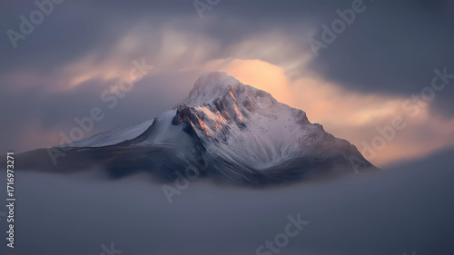Snowy mountain peak landscape scenic view in clouds travel destination adventure tourism wallpaper background
