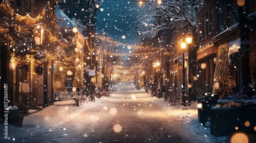 Snowy Streets Lit Up for the New Year Celebrations