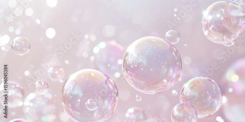 Soap bubbles floating on soft gradient background