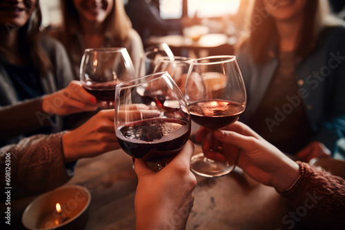 Socializing Over Wine Friends Enjoying Each Others Company Closeup. Generative AI