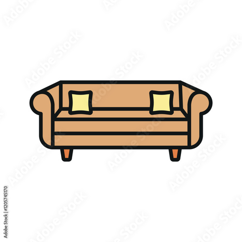 Sofa icon featuring a classic and elegant design, ideal for adding sophistication to luxury, vintage, or high-end furniture-themed projects