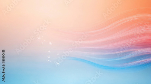 Soft Abstract Background in Blue and Peach Tones with Light Streaks and Copy Space