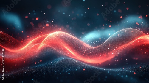 Soft abstract crimson red light waves with teal blue highlights and a shimmering bokeh effect on a deep navy backdrop, glowing sparkles.