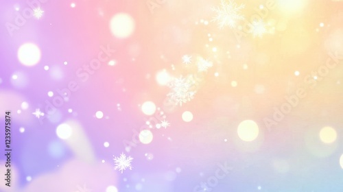 Soft Abstract Pastel Background with Bokeh Lights and Snowflakes, Perfect for Seasonal or Decorative Themes