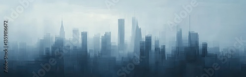 Soft abstract silhouette of a city skyline during early morning light with blue tones and a mysterious atmosphere
