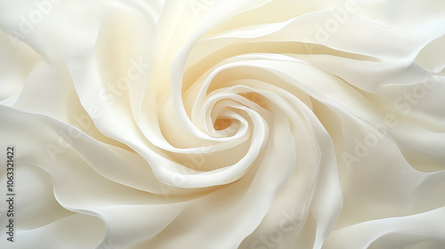 Soft and elegant white fabric swirling in a delicate pattern, perfect for backgrounds, textiles, and design projects.