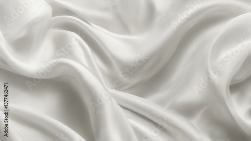 Soft and Luxurious White Fabric with Elegant Texture and Subtle Sheen CloseUp Image with Flowing Folds and Creases