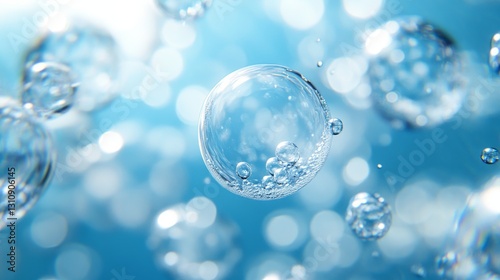 Soft Aqua Blue Background with Floating Bubbles for Beauty and Wellness Concepts. Gentle Pale Blue Abstract Backdrop for Spa, Skincare, and Relaxation Themes.