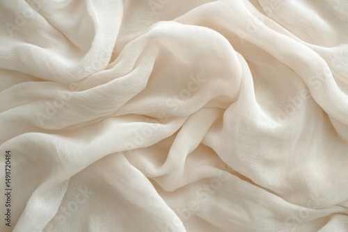 soft beige fabric with delicate woven texture gently folded creating flowing organic shapes and shadows
