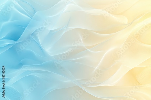 Soft blue and yellow flowing fabric background with gentle waves created by light and texture in a serene setting. Generative AI