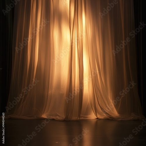 Soft blue curtains with spotlight, blurring lines and waves, smooth texture, and light rays, creating a captivating backdrop for modern design