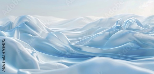 Soft, blue fabric drapes and flows in undulating waves, creating an ethereal landscape reminiscent of snow-covered mountains.