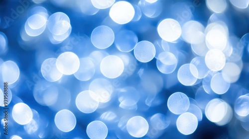 Soft bokeh lights in shades of blue and white creating a peaceful, abstract festive atmosphere.